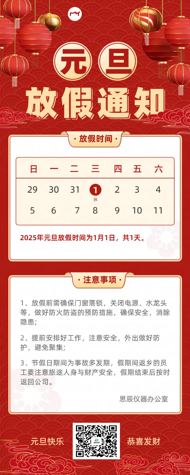 2025年思辰儀器元旦放假通知