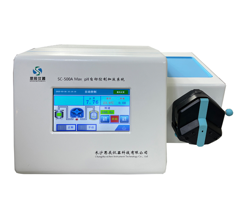 本系統是長沙思辰儀器研發團隊最新研制開發的第三代高精度pH自動控制系統,為高等院校、科研院所實驗室,中外研發企業及研發生產等部門精心設計制造的,并且擁有完全自主的知識產權。獲得了國家一項發明專利【ZL201410349779.8】及多項實用新型專利【ZL201721373766.X】;【ZL 201420406067.0】;【ZL201420406055.8】。整機采用PLC控制,并與定制的蠕動泵聯機進行加酸或加堿來自動調節容器中溶液pH的預設值。是催化、制藥、化工、電鍍、生化、生物發酵、植物提取物車間,科院院所等實驗室或生產中小試場所理想的pH監測自動控制系統。