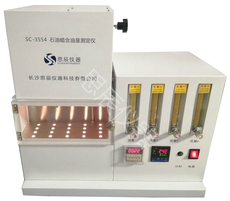 本儀器是中華人民共和國標準 GB/T3554《石油蠟含油量測定法》所規(guī)定的要求設(shè)計制造的,本儀器適用于凍凝點在 30℃以上,含油量不大于 15%的石油蠟。對于某些含油量大于5%,在丁酮中不能完全溶解而分層的石油蠟本儀器不適用。 將試樣溶解于丁酮溶劑中,溶液冷卻至-32℃時析出蠟,經(jīng)過濾管取出濾液。并將濾液中的溶劑蒸出,稱重殘留油,通過計算得到試樣含油量的質(zhì)量分數(shù)。